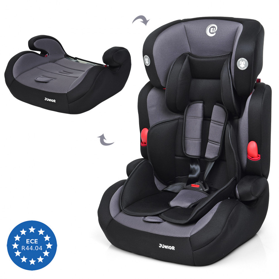 Данная модель сочетает в себе автокресло и бустер.Бустером называется нижняя часть автокресла без спинки, котораяпозволяет зафиксировать ребенка в автомобиле с помощью штатногоремня безопасности.Автокресло ME 1008 JUNIOR крепится на заднем сиденье автомобиляштатным ремнём безопасности через специальные проёмы в задней частиспинки изделия.Автокресло El Camino соответствует международным стандартамбезопасности ЕСЕ R44.В своем основании кресло имеет жесткий каркас, изготовленный изпротивоударного пластика.Сам каркас обтянут тканью со специальными мягкими тканевымивкладышами, что обеспечивает максимальный комфорт.Чехол автокресла El Camino ME 1008 JUNIOR, изготовленный изгипоаллергенного материала, легко снимается и моется в случаенеобходимости.Также чехол со временем не теряет свой цвет и не выгорает насолнце.Для большего удобства кресло имеет удобные подлокотники иподголовник.