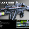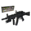 Автомат удобно держать в одной руке. Для высокоточной стрельбы он оборудован лазерным прицелом. Игрушечное оружие заряжается пластиковыми пульками, которые входят в комплект. Используйте игрушку на открытом пространстве.