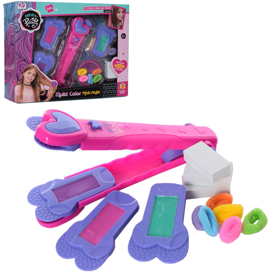 — в комплекте: мел для волос, устройство для окрашивания, резиночки;