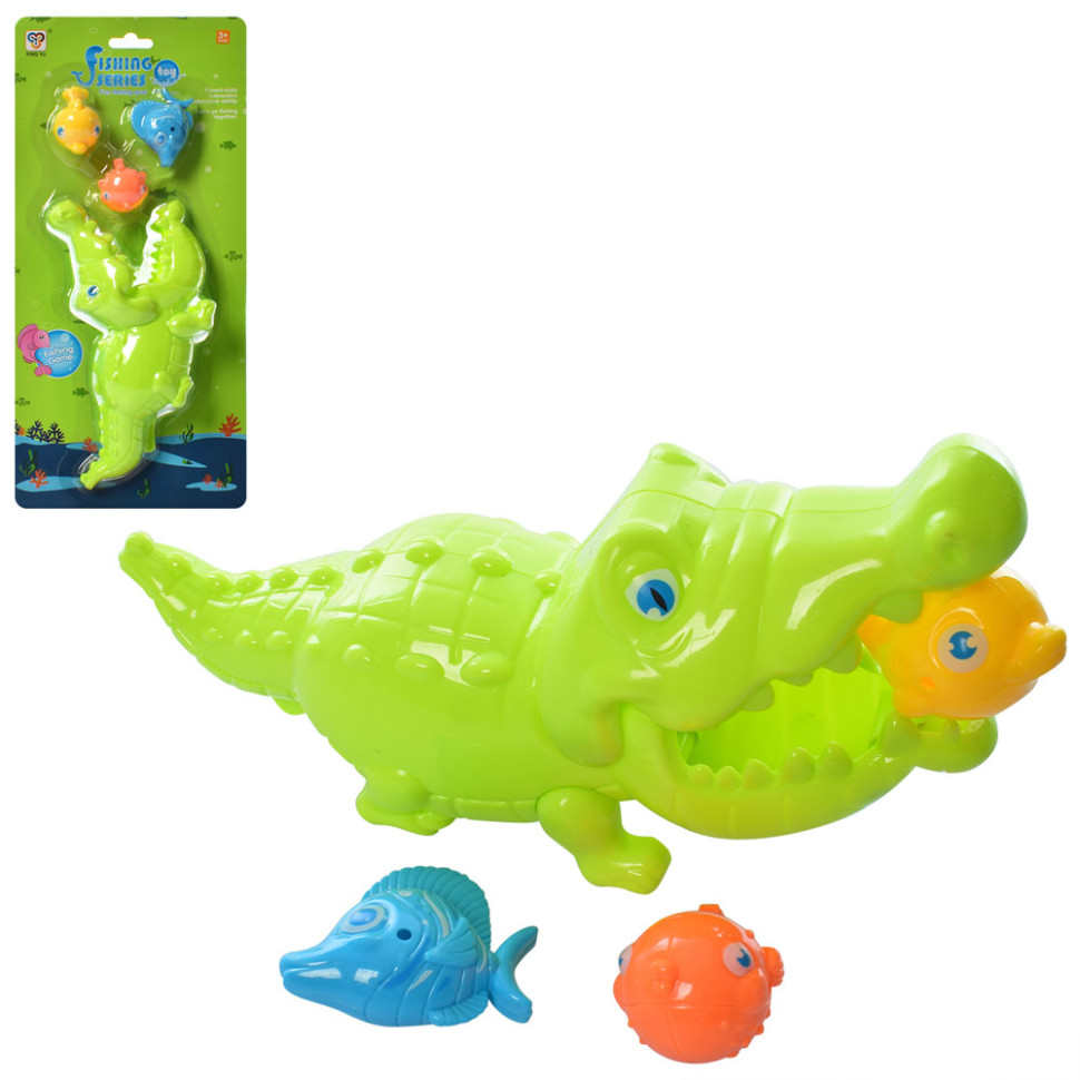 В наборе крокодил -ловушка 20 см, рыбки — 3 шт.