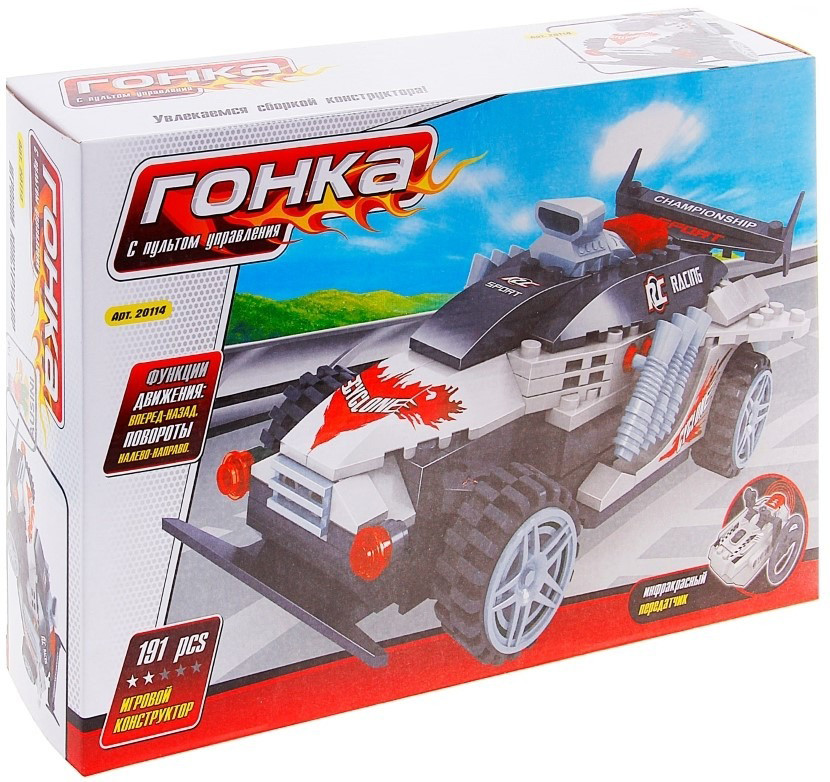 Конструктор для детей на пульте радиоуправления “Winner” – идеальный подарок на все случаи жизни. Он прекрасно подойдет для ребенка в возрасте 6-ти лет и старше. Дизайн игрушки заслуживает отдельного внимания. Благодаря наличию мелких деталей и сложности конструкции вы сможете собирать машинку вместе с малышом. Впрочем, если ребенок захочет решить эту задачу самостоятельно, проблем в сборке однозначно не возникнет. В комплекте с конструктором прилагается подробная и понятная инструкция, так что растеряться будет практически невозможно. Крепления выполнены очень качественно, поэтому уже собранный автомобиль не будет рассыпаться, даже если кроха будет играть с ним очень активно. Детали не имеют острых граней, а значит и порезаться об них нельзя. Поверхность элементов приятная на ощупь, да и работать с ними – одно удовольствие. Прикоснитесь к прекрасному и создайте автомобиль своей мечты вместе с развивающим конструктором на пульте управления “Winner”.
