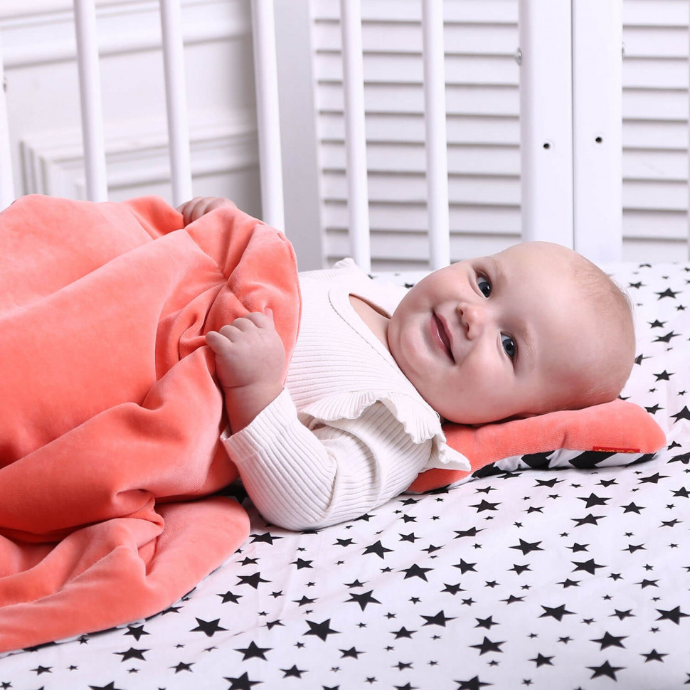 • Универсальное одеялко, одна сторона мягкая и теплая из велюра, вторая – дарящая прохладу из бязи. Его можно использовать в качестве конверта для выписки из роддома.