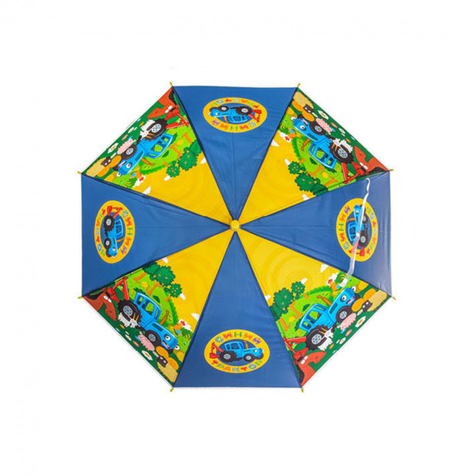 Стильный зонт с изображением синего трактора из мультфильма понравится всем ребятам, а свисток даст возможность не скучать в непогоду. Зонтик состоит из 8 металлических спиц, имеет полуавтоматний механизм открытия раскрывается нажатием на кнопку, закрывается вручную.
