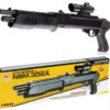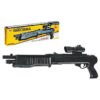 Игрушка помповое ружьё рекомендовано детям от 5 лет. Стреляет пластмассовыми пульками 6 мм. Дальность — 20 метров. Но можно не использовать пульки и Ваш ребенок просто с удовольствие будет передергивать затвор (под цевьем) с характерным движением вперед-назад (подобно различным героям из известных приключенческих фильмов). Корпус выполнен из пластика. Есть лазерный прицел (красный луч), который работает от батареек LR44 (V13GA, AG13, LR1154)