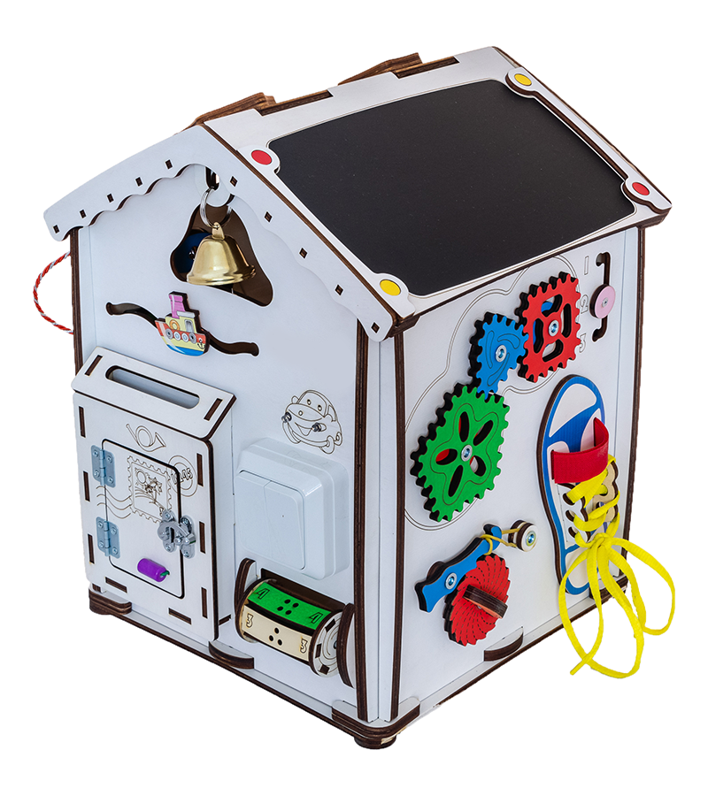 Развивающий домик со множеством элементов позволяет развивать мелкую моторику, логику, память, усидчивость и внимательность у малыша. Ваш ребенок учится взаимодействовать с повседневными предметами, узнает первые буквы, цифры и цвета, тренирует первые навыки, например, застегивание различных застежек и шнурков.