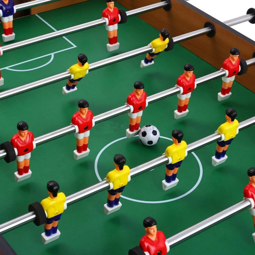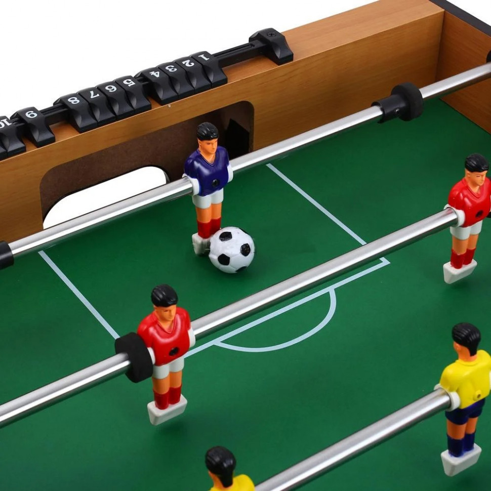 Детский настольный футбол 20435 со шкалой ведения счета — это великолепный подарок для любого мальчишки, который является горячим поклонником популярной игры. Когда погода не позволяет погонять мяч на настоящем футбольном поле, то эта игровая, полнофункциональная платформа поможет поиграть в любимую игру прямо у себя дома. Универсальная настольная игра, рассчитанная на двоих игроков, оснащена специальной шкалой для ведения счета, имеет эргономичные ручки с нескользящей, рифленой текстурой.