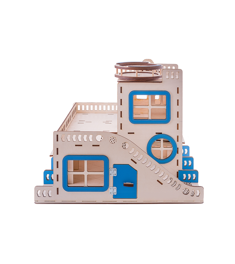 Деревянный гараж с треком это замечательная игрушка для вашего ребенка. Этот гараж для машинок имеет два этажа, боксы и спуски для автомобилей, а также вертолетную площадку на крыше.
