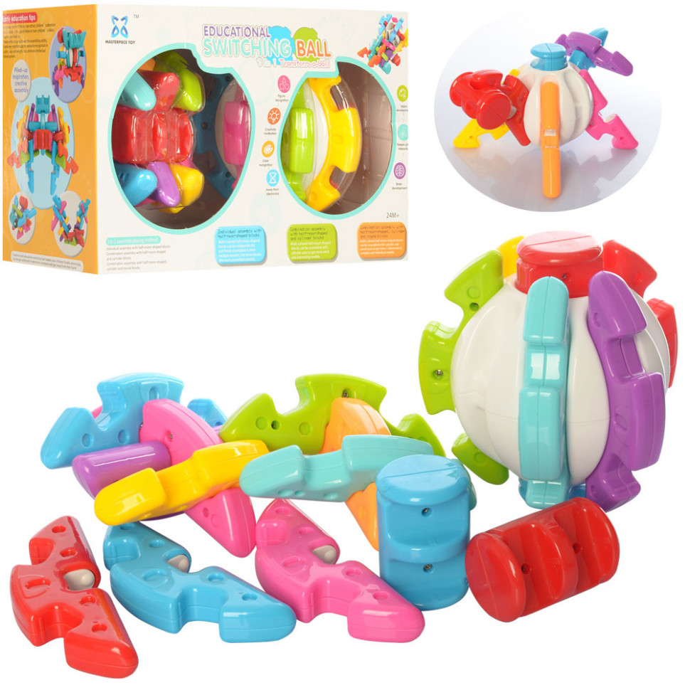 Развивающий шар-трансформер станет отличной игрушкой для любознательных детей, которые стремятся к всему новому. Изделие изготовлено из качественного пластика, который совершенно безопасен для маленьких детей. Из трансформера можно собрать множество различных предметов, стоит только включить фантазию. Из обычного шара можно получить красивую ракету, аккуратный цветок или даже сказочный гриб. Игрушка поможет в освоении понятий формы и цвета. Выпуклые узоры на каждой детали влияют на формирование тактильной сенсорики. В собранном виде шар практически ничего не весит, поэтому малыш любого возраста спокойно сможет держать его в руках. Даже родители обязательно оценят забаву по достоинству.