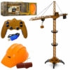 Большой подьемный кран на радиоуравлении (в пульте 2 батарейки типа АА) ,Кран на аккумуляторе(Аккумулятор 4.8V),и кабель для зарядки USB.В комплекте идёт каска строительная.