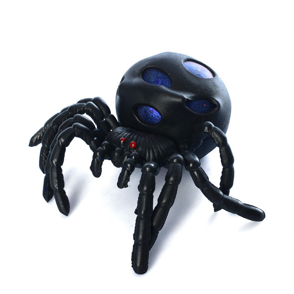 Антистесс оформлен в виде паучка, при сжатии игрушки паук превращается в виноградную гроздь. Размер игрушки 12 см.