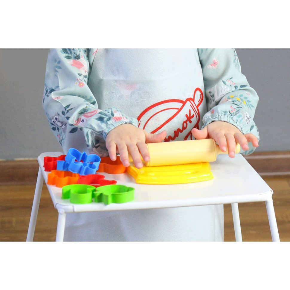 В комплекте есть все необходимое для первых кондитерских шедевров: 8 цветных формочек, дощечка и скалка. Можно вырезать пирожные различной формы, выбрав что Вам нравится. Здесь есть интересные фигурки: мишка, бабочка и уточка, цветочек, яблочко, грибочек, сердце и елочка.