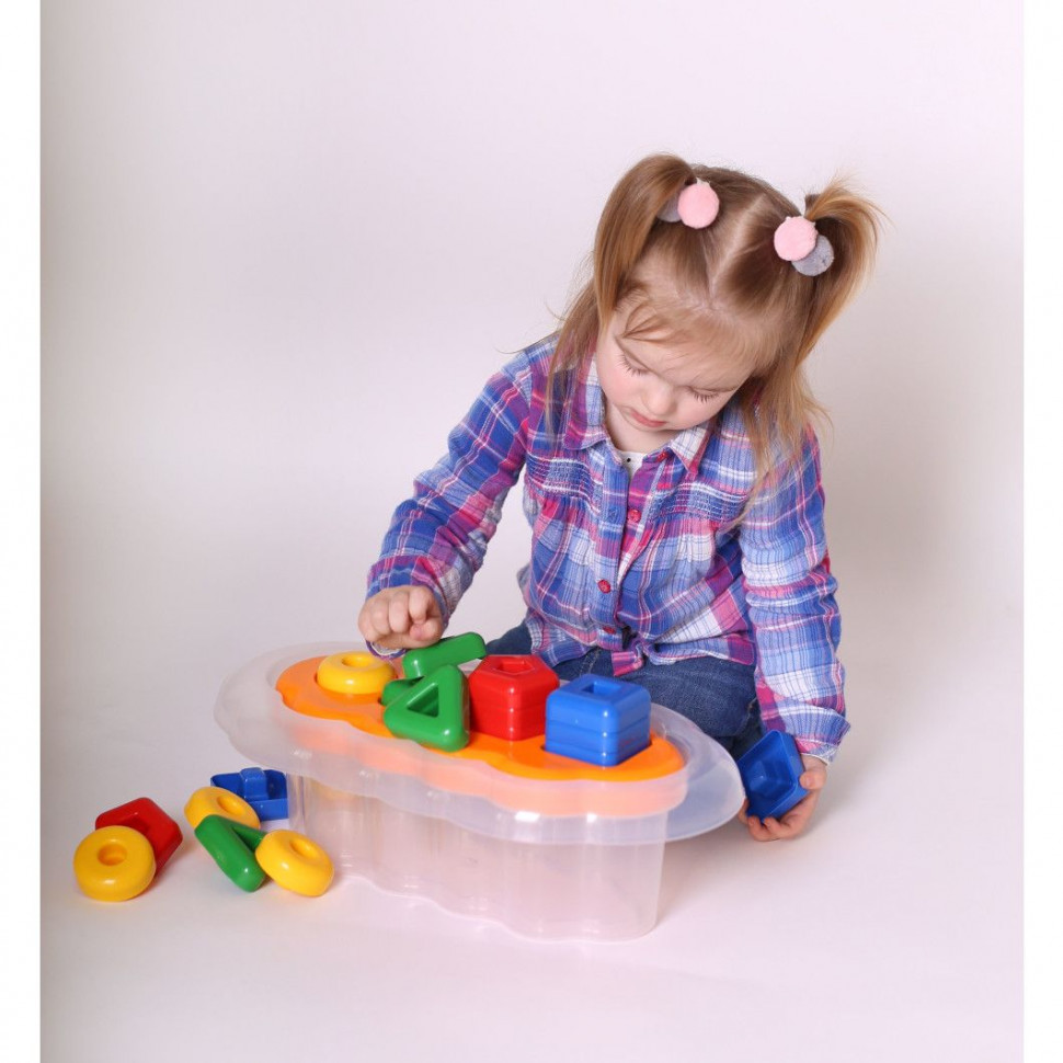 В большом прозрачном лотке очень удобно хранить фишки, также он служит «фундаментом» для будущего здания малыша. Все элементы имеют закругленную форму, крупные элементы удобны для маленьких ручек. Детали можно обрисовывать на бумаге.