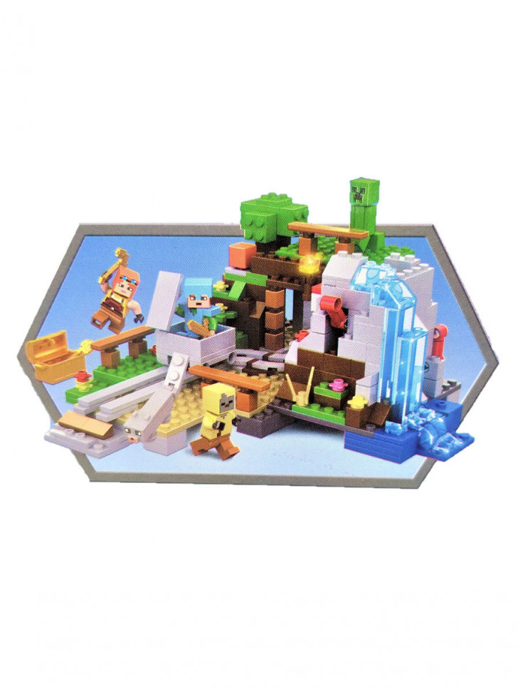 Зеленый водопад на котором живет Крипер, Алмазный Стив на тележке и еще 2 фигурки.