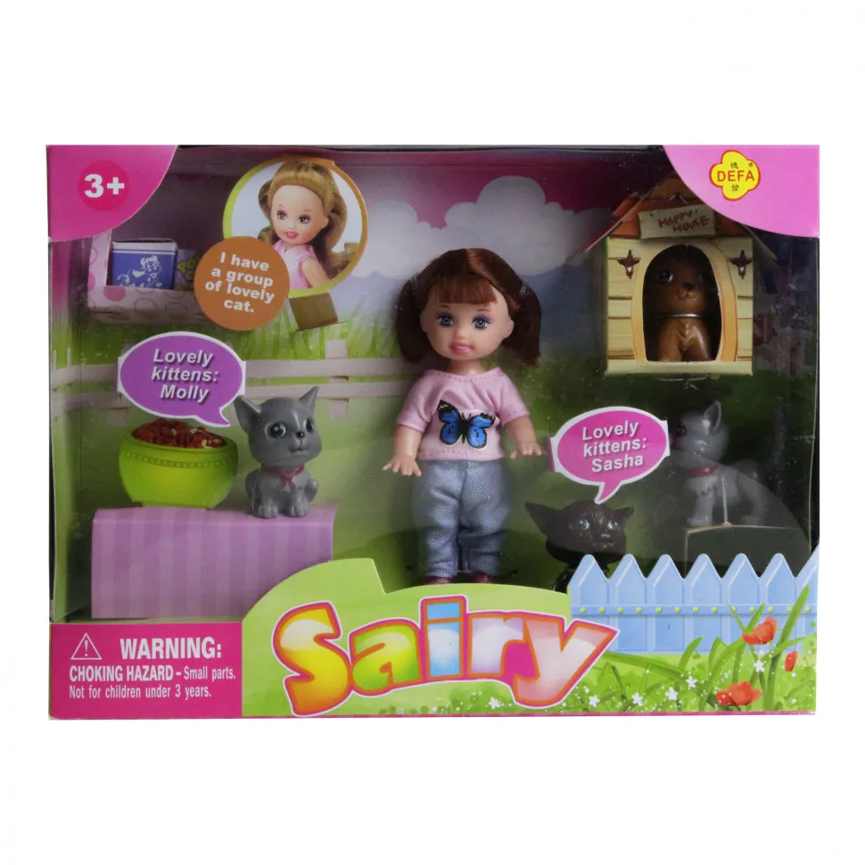 Игровой набор в котором есть маленькая куколка, фигурки животных 4 штуки, будка.