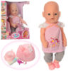 Пупс Бэби с аксессуарами. Размер пупса 42см. В наборе бутылочка, горшок, соска-магнит (закрывает глазки), тарелка, ложка, каша, подгузник. Упаковка коробка 40 см