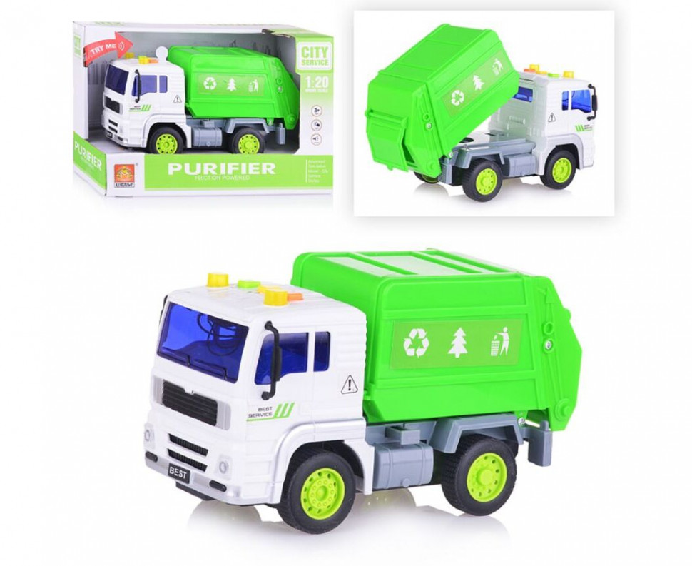 Машинка приводится в движение путем механического воздействия и двигается в ту же сторону, в какую оно было направлено (толкнул — поехала). При нажатии на кнопки на корпусе машинки мигают разноцветные лампочки.