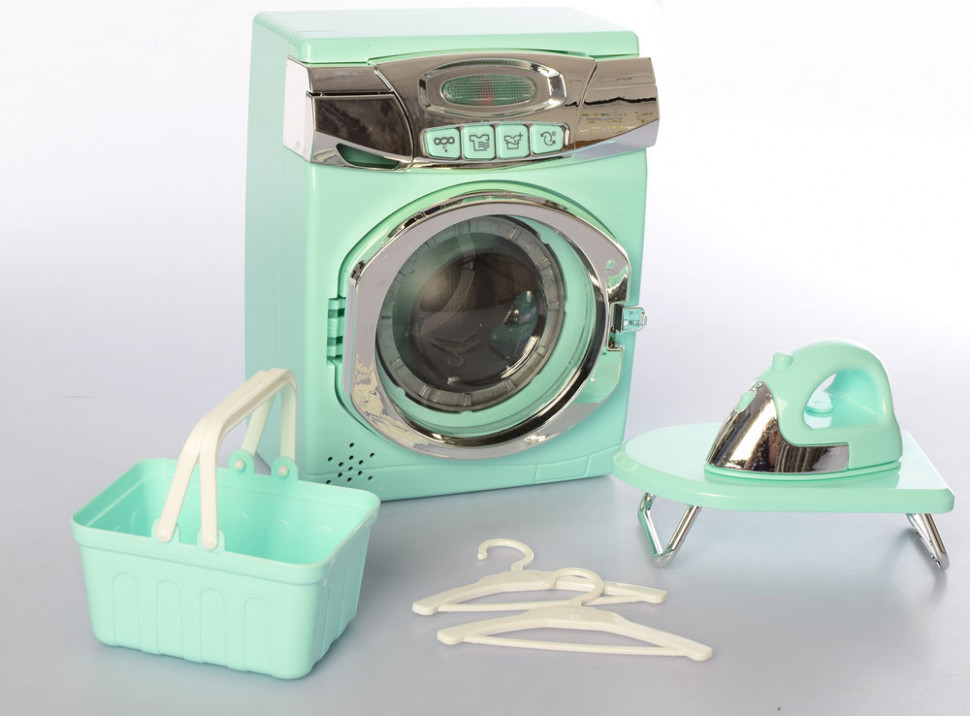 Игровой набор бытовой техники обязательно понравится любому ребенку. В наборе есть все что необходимо для сюжетной игры: стиральная машина17,5см, гладильная доска, утюг. Игрушка со звуком, светом. Работает от батареек.