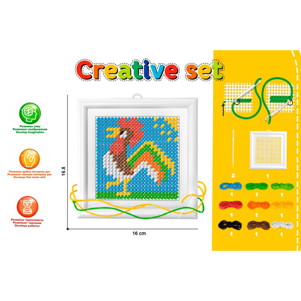 В наборе: пластиковая рамка 16х16 см — 1шт., иглы для вышивания — 2 шт., цветные нити согласно схеме.