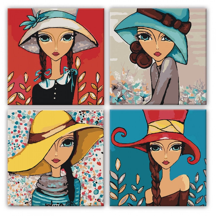 — 4 полотна на деревянных подрамниках 18 * 18. На каждом полотне размещены контуры изображения с номерами под раскраску.