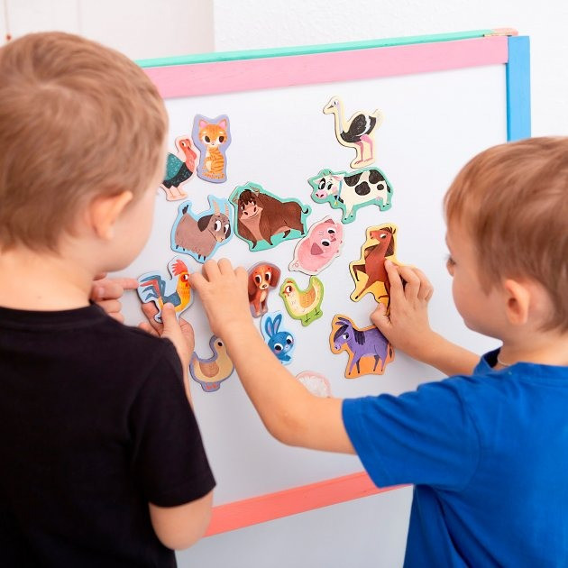 При помощи ярких магнитных фигурок дети знакомятся с животными, учатся различать размеры и особые признаки.