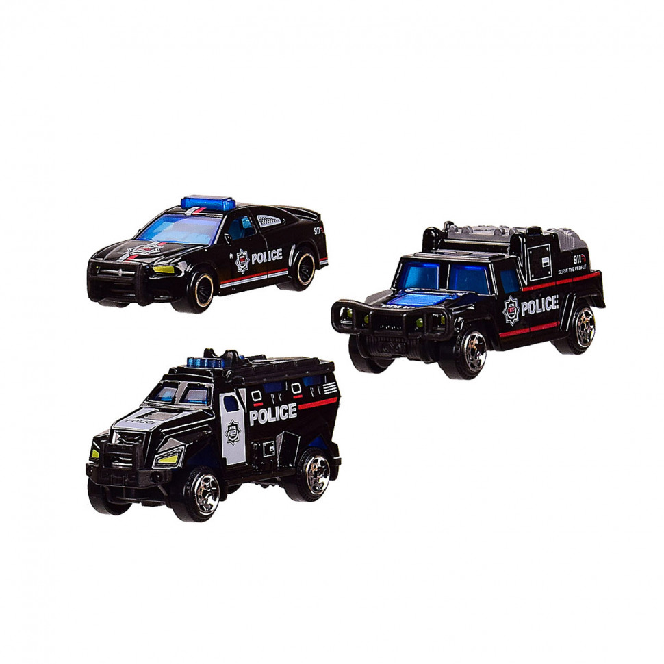 Набор металлопластиковых машинок «Mega Garage». В комплекте есть 3 машинки. Длинна 1 машинки — 7,5 см. Масштаб — 1:64. Выполнено из качественных и безопасных материалов. Для детей от 3-х лет.
