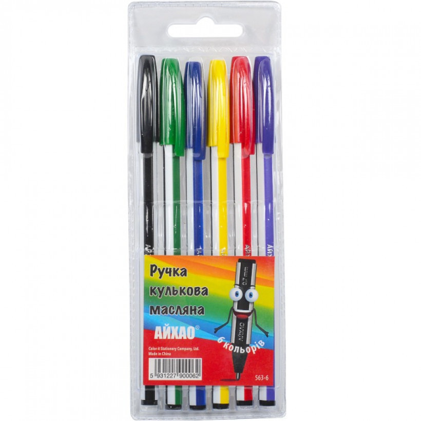 Набор ручек масляных «АЙХАО». Шестигранный непрозрачный корпус, сменный стержень, толщина 0.7мм, 6 цветов.