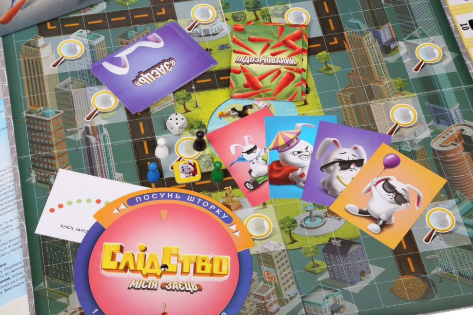 В городском подземелье поселилось семейство Зайцев. Кто-то из них украл целый мешок моркови и убегает с ним в свое подземное логово! Вам и вашей команде предстоит выяснить, кто же является Зайцем-Воришкой? Вы должны успеть разгадать эту загадку раньше, чем он пройдет через весь город и попадет к своему логову. Работайте как слаженный механизм, подсказывайте друг другу, найдите виновного: бросайте кубики, ищите доказательства, исключайте подозреваемых.