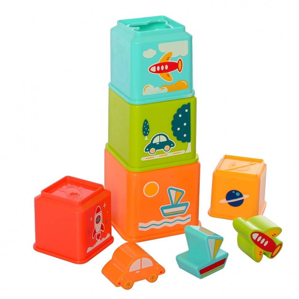 Пирамида из кубиков с цифрами от 1 до 5 и различными изображениями.