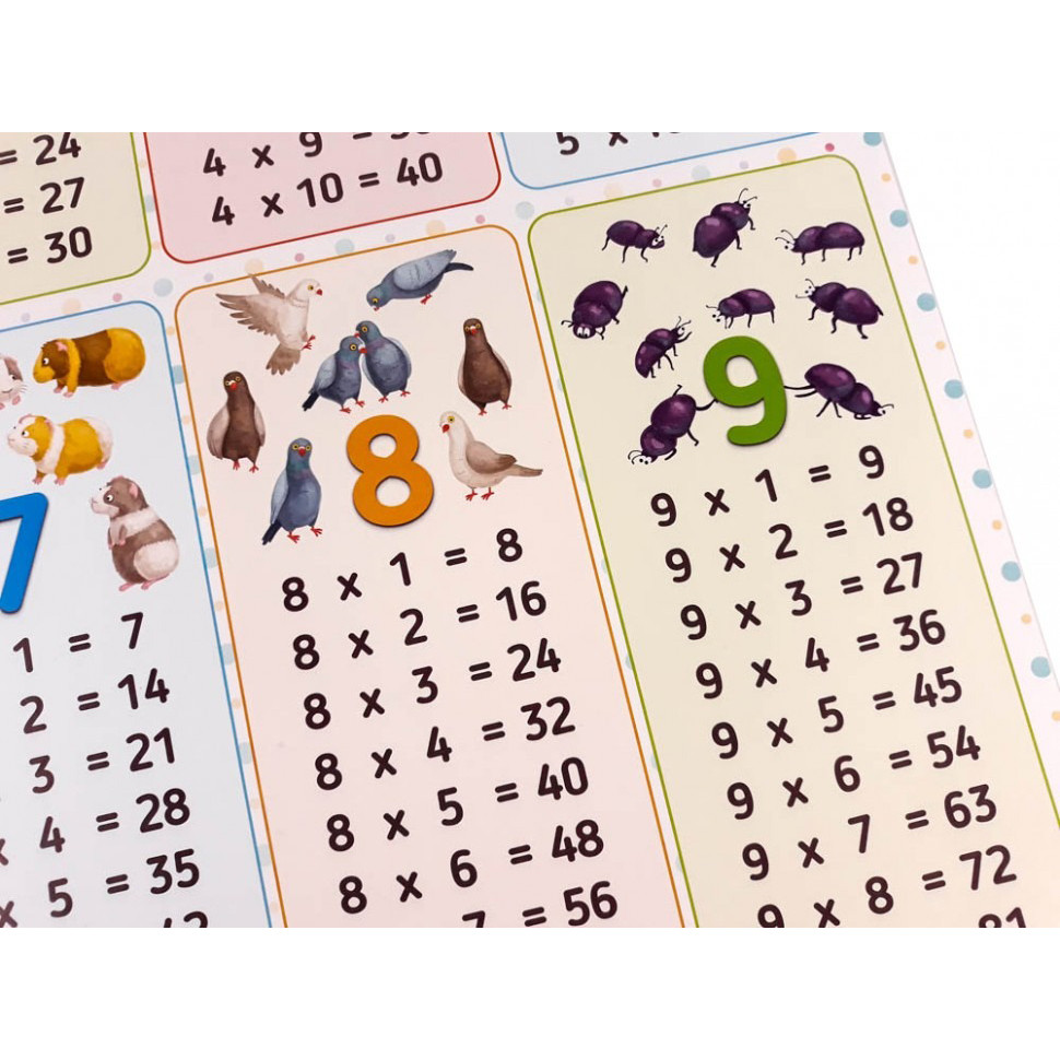 Плакат предназначен для всех, кто изучает таблицу умножения обучает математике в начальной школе и дома. Иллюстрированный милыми изображениями.