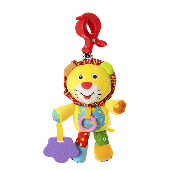 Игрушка имеет специальное крепление, за которое ее можно подвесить к кроватке, коляске или автокресла.
