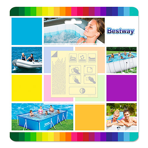Прежде чем начинать ремонт необходимо предварительно очистить и тщательно обезжирить поврежденный участок. Далее на место повреждения необходимо приложить виниловую заплатку и придавить ее. После этого нужно оставить на несколько часов изделие с заплаткой. Место склейки должно быть плотно прижатым. После проведения ремонта изделием нельзя пользоваться на протяжении примерно 12 часов. При помощи ремкомплекта можно провести ремонт не один раз Особенности ремкомплекта Bestway:предназначение фремонта продукции из ПВХ; подходит к Бассейнам детским;цвет: прозрачный;размер заплатки: 6,5х6,5см;количество заплаток: 10 шт (самоклеящаяся).