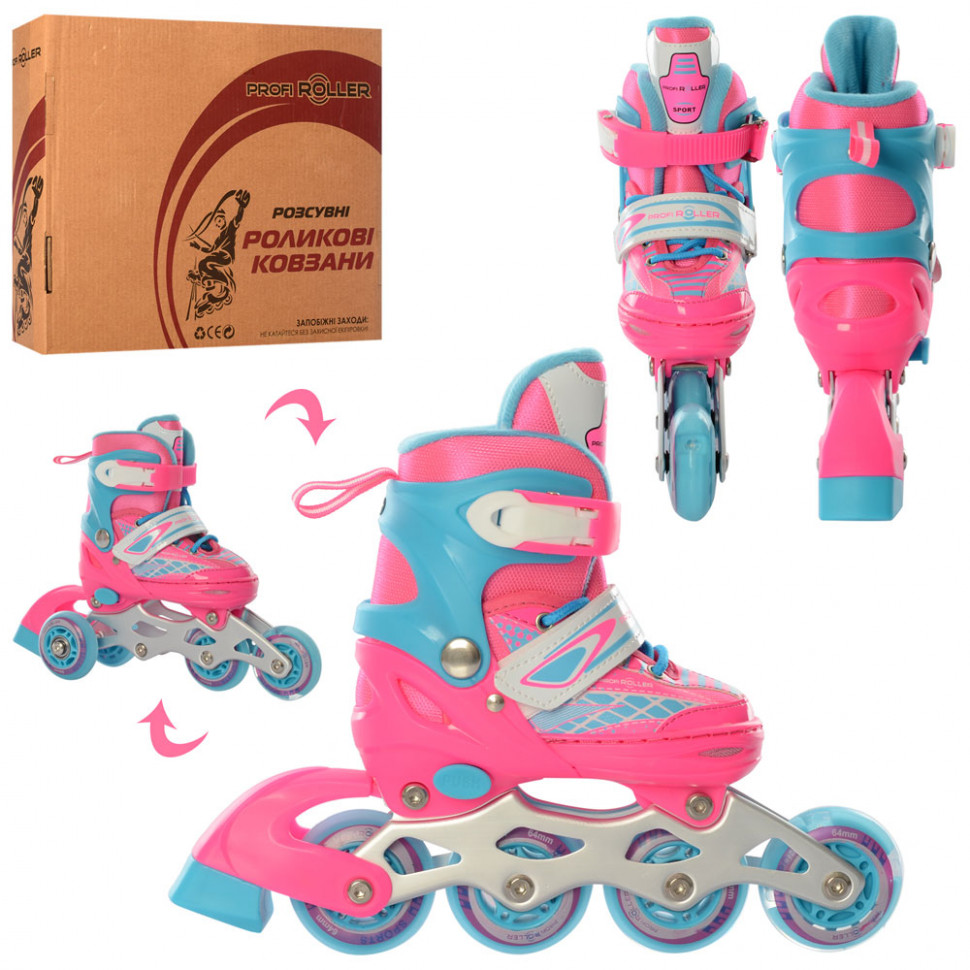 Ролики детские раздвижные A 4140-XS размер (27-30) (Розовый-Голубой)