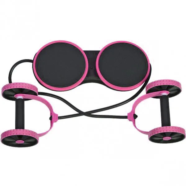 Многофункциональный тренажер с эспандерами предназначен для выполнения упражнений дома с целью тренировки разных мышц тела. Тренажер включает два эспандера, два ролика для рук, соединённые со специальной платформой. На платформе расположены вращающиеся круглые пластины для ног(18,5см) с противоскользящим покрытием. Материал: пластик; эспандеры — эластичная резина, рукоятки роликов пористая резина . Размер платформы для ног 40,5*15см; длина жгутов регулируется, максимальня длина 70 см.