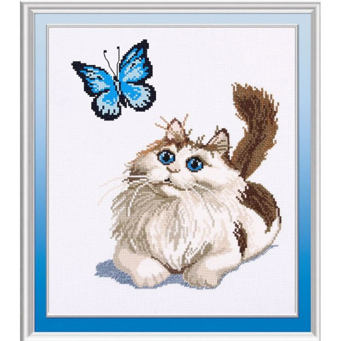 Вышивка крестиком «Кот и бабочка» 46х56см