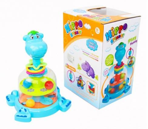 Красочный и привлекательный Бегемот -юла понравится ребенку и сумеет заинтересовать его.