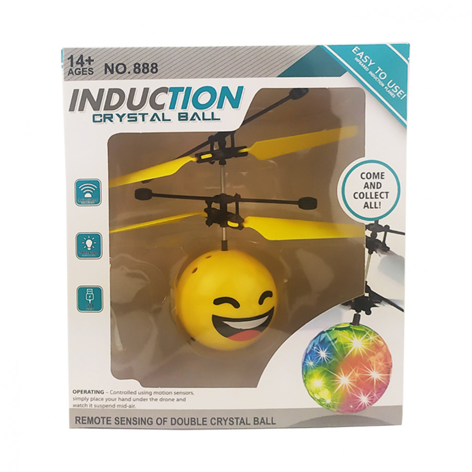 Запускалка «Шар-смайлик» со светом, индукционный, в наборе USB-заряд. Время полета 5-7 минут.